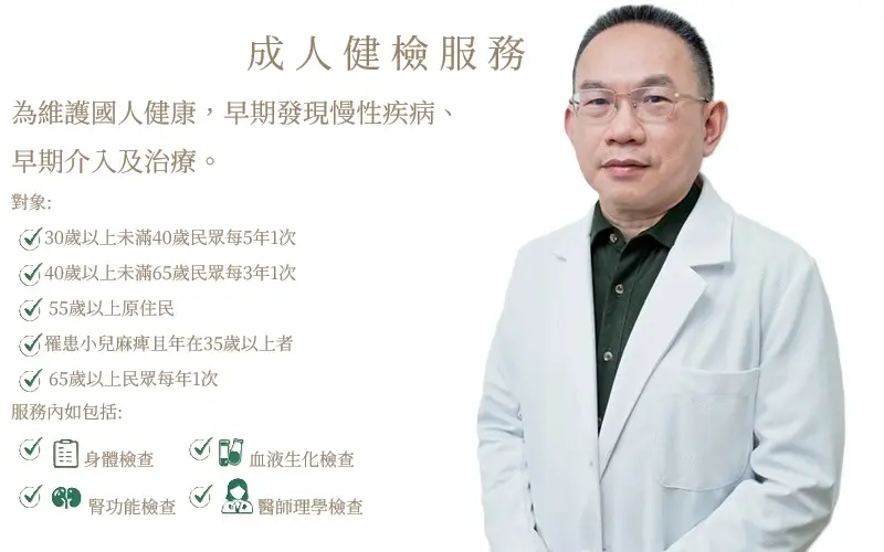 成人預防保健是國民健康署推動的健康促進服務,透過基本健康檢查與生活型態評估,協助民眾掌握健康狀況,並由醫療團隊提供實用的健康建議。